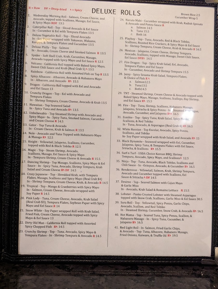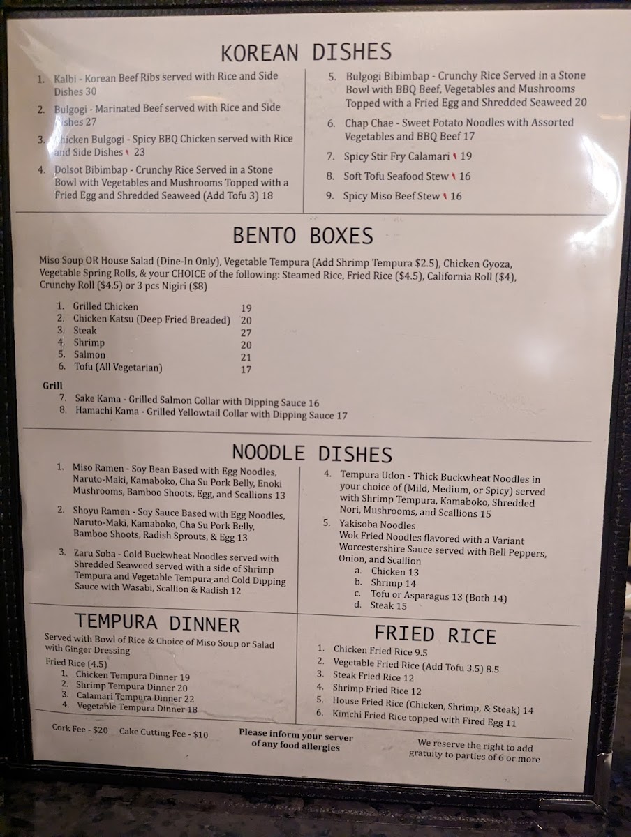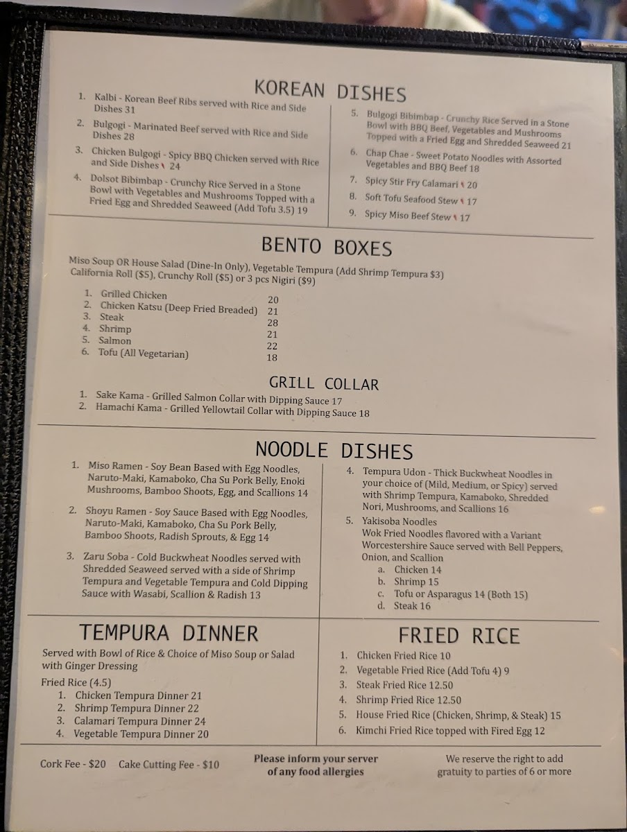 Sushi Lola’s offers a menu that strikes a balance between classic sushi favorites and hearty Korean-inspired dishes, all served in a relaxed, inviting setting. The menu is approachable yet diverse, featuring options from fresh nigiri and creative rolls like the Zombie Roll and Pink Lady Roll, to comforting bowls such as Dolsot Bibimbap and Bulgogi Bibimbap.